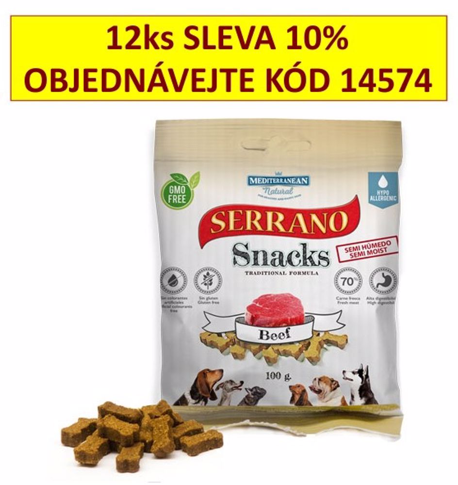 Ideálna ako odmena pri tréningu alebo len tak pre radosť. Obsahuje 74% čerstvého mäsa, z toho 46% šunky serrano a 28% hovädzieho mäsa, ktoré zaisťujú vysokú chutnosť a výživovú hodnotu.